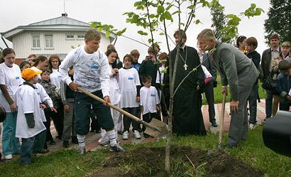 Нападающий сборной России по футболу и лондонского "Арсенала" Андрей Аршавин в качестве посла ФИФА посетил Детскую деревню SOS под Пушкиным. Он пообщался с ребятами, раздал несколько десятков автографов и посадил дерево.
