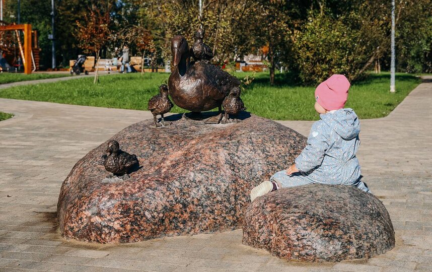 В благоустройстве зеленой зоны принимали участие и воспитанники районного "Кванториума". Ребята выбрали символ сквера. Им стала утка с утятами.