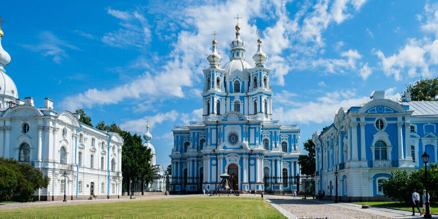 Автор проекта – Бартоломео Растрелли. Смольный собор строился с 1748 по 1835 год. По утверждённому в 1835 году императором Николаем I "Положению о соборе" храм получил статус собора всех учебных заведений. После революции 1917 года здание использовалось как склад декораций, в годы войны в подвалах находилось бомбоубежище. В 1990 году в храме был открыт концертно-выставочный зал. 25 января 2016 года Смольный собор был передан Русской православной церкви.