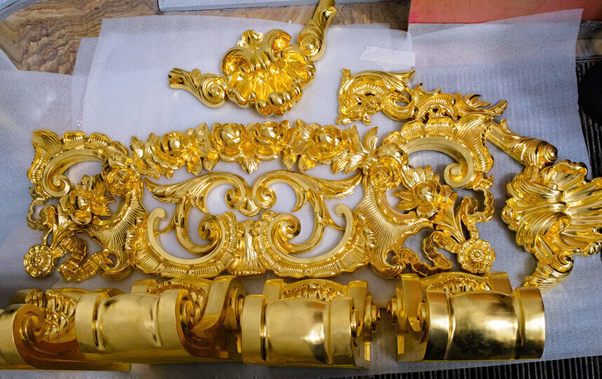 – Иногда находят недочёты, – говорит отец Роман. – Исправленная деталь отправляется в мастерскую. Там её вырезают из дерева, покрывают сначала специальным составом, затем золотят.