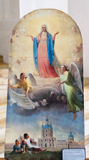 – К сожалению, за долгие годы было утрачено всё убранство, – рассказывает помощник настоятеля Смольного собора дьякон Роман Катаев. – Сохранилась единственная икона "Предстательство Божией Матери за воспитанниц Смольного института". Она была написана знаменитым художником Алексеем Венециановым специально для Смольного собора: в нижнем регистре изображён Смольный монастырь, на фоне которого сидят смолянки. Сейчас эта икона находится в Русском музее, а для собора иконописцы сделают копию.
