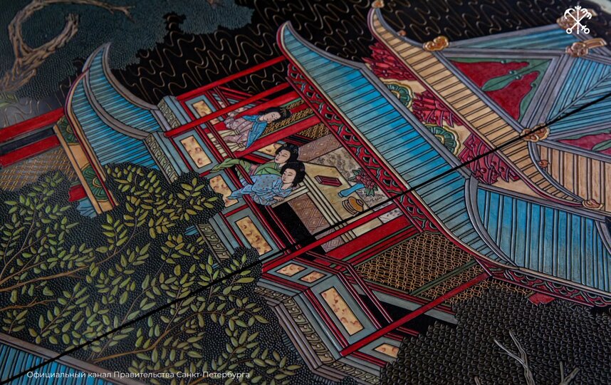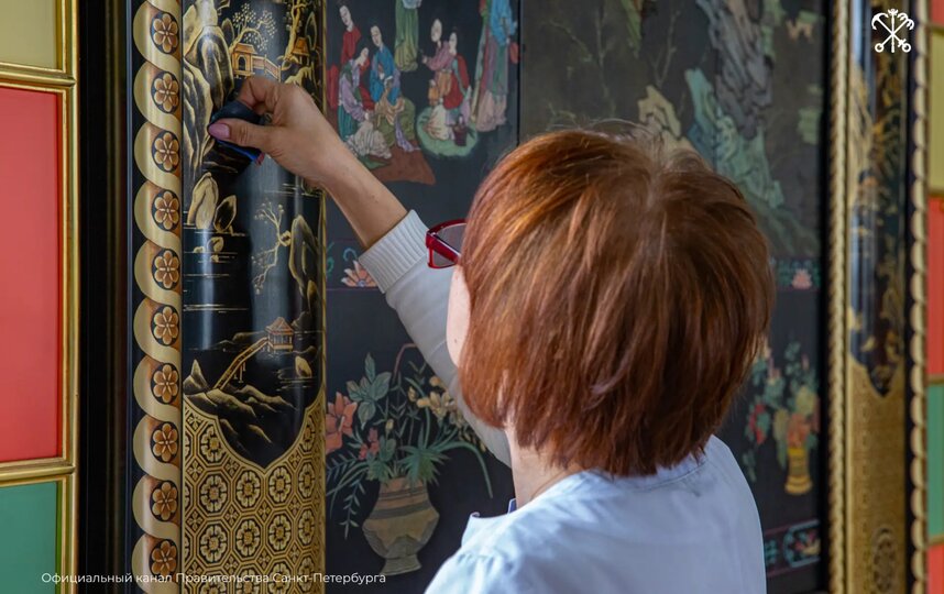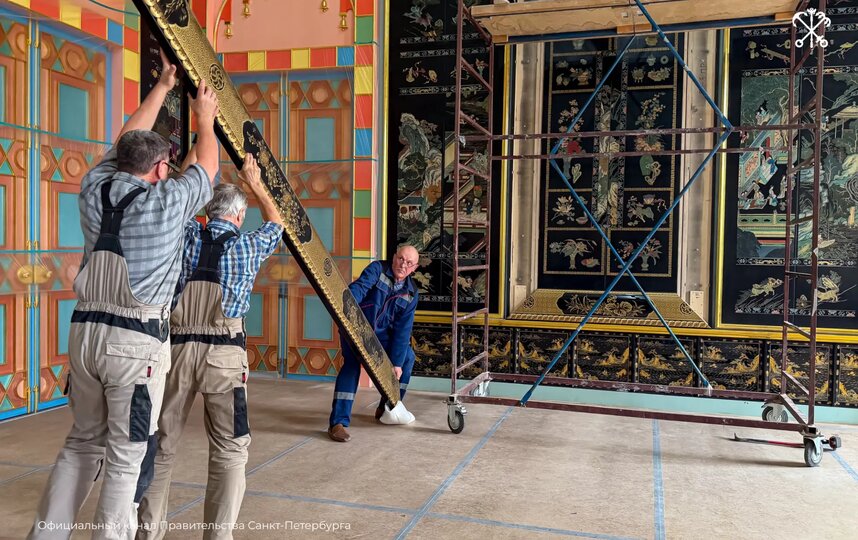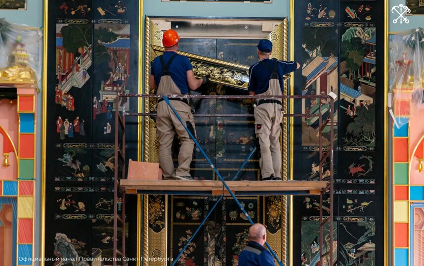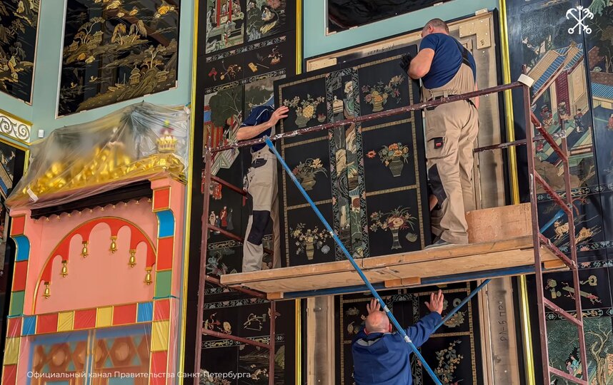 Как сообщили 29 марта в правительстве Петербурга, монтаж лаковых панно стартовал в Китайском зале Екатерининского дворца.