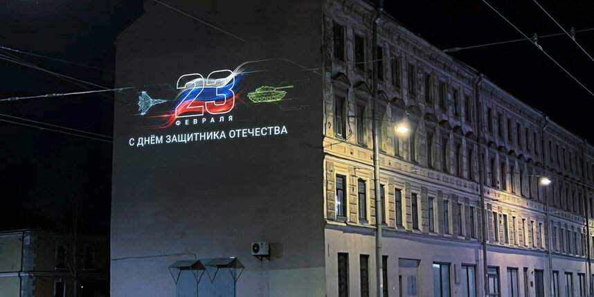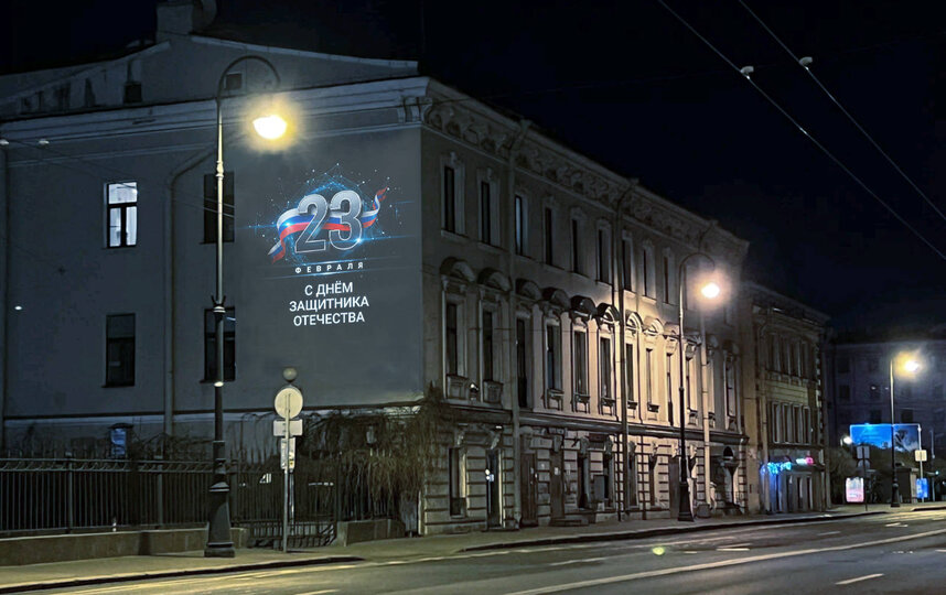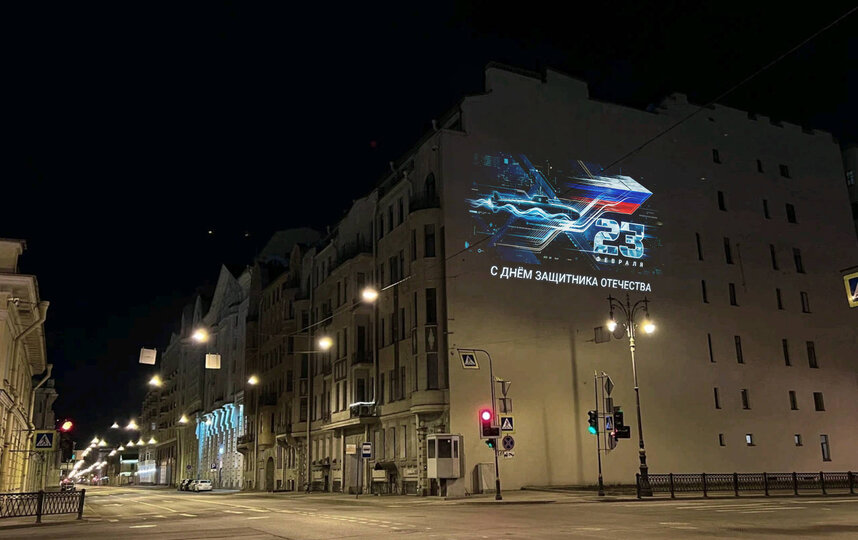 Как сообщила пресс-служба Смольного, световые проекции, посвященные Дню защитника Отечества, включаются ежедневно вместе с городским вечерним освещением с 20 по 23 февраля. Их можно увидеть в Пушкинском, Московском, Адмиралтейском, Центральном, Петроградском, Василеостровском и Петродворцовом районах.