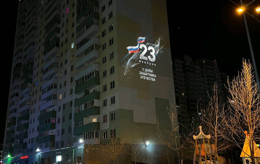 Проекции-открытки, подготовленные к 23 февраля, выполнены в современном и динамичном стиле.