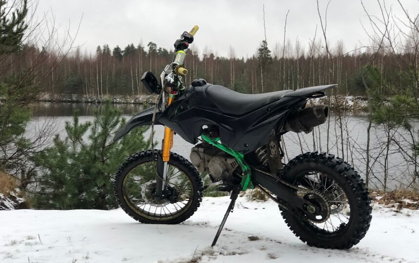 Владельцы мотоциклов эндуро меняют летнюю резину на зимнюю и катаются по снегу
