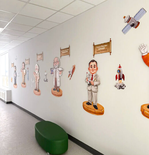 Интерьер детского сада помогает малышам изучать Петербург. На одном из этажей есть большая интерактивная карта города с миниатюрными достопримечательности. В честь них назвали и группы: "Метеоры", "Чижики-Пыжики" и "Фонтанчики".