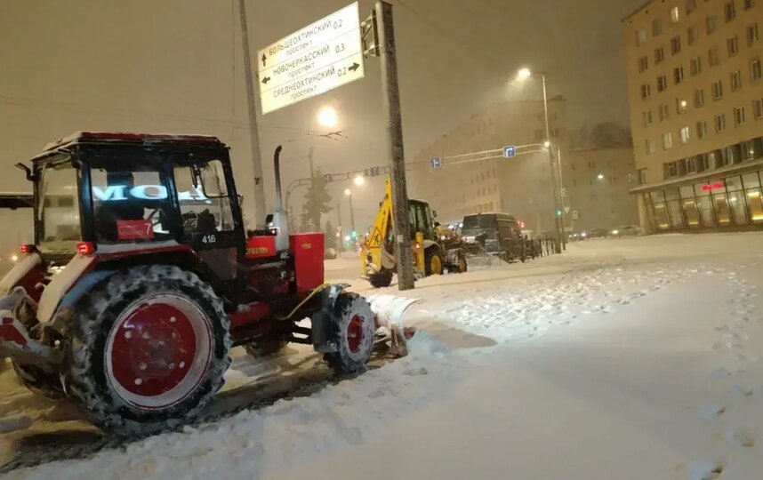 На улицах Северной столицы в ночь работали более 930 единиц техники, а в утреннюю смену к расчистке приступили более 1020 единиц техники и 1051 работников ручного труда. Во дворах Петербурга сугробы разгребали примерно 4000 дворников, за ночь сумели вывезти 15300 м3 снега.