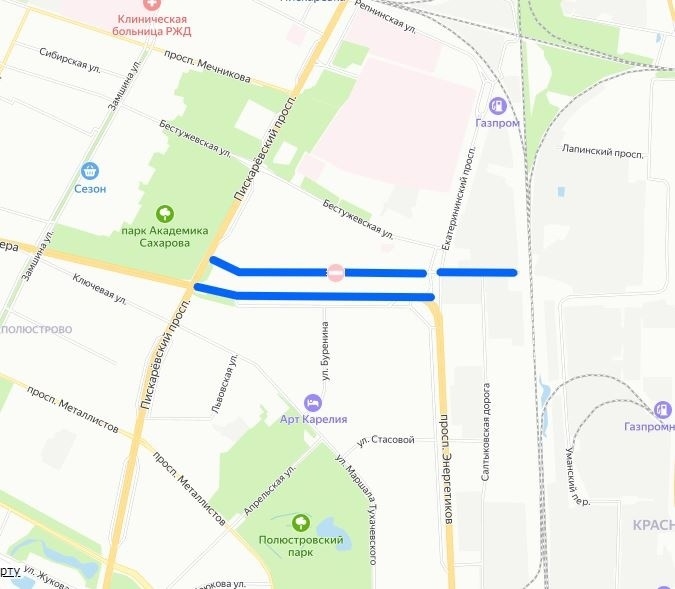 Ограничение движения с 1 по 5 августа будет и по проспекту Маршала Блюхера от Пискаревского проспекта до дома 59 по проспекту Энергетиков.