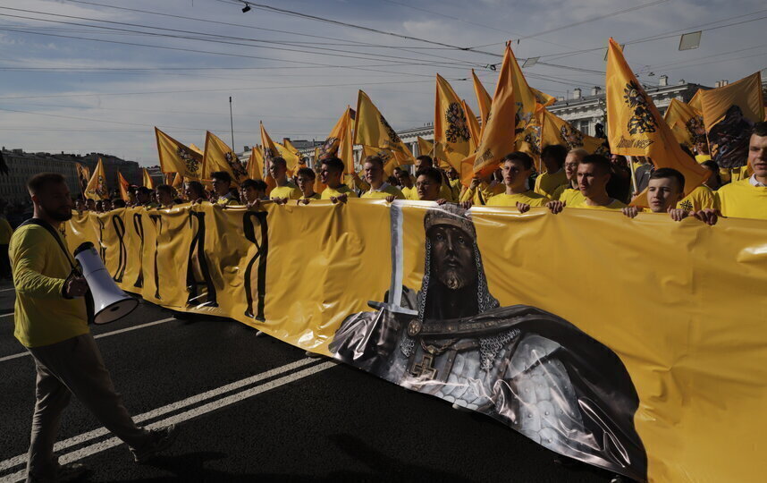 Во главе колонны прошли представители митрополии и городской власти, в том числе ректор СПбГУ Николай Кропачев, спикер Заксобрания Александр Бельский и депутат Госдумы Михаил Романов. Кроме того, среди участников были военнослужащие, представители движений "Общество. Будущее" и "Русская община", которые принесли на крестный ход иконы и имперские флаги.