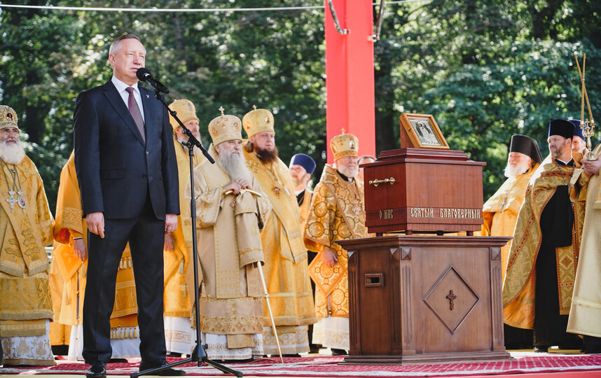 В пятницу, 12 сентября, в центре Северной столицы был организован крестный ход в честь 301-й годовщины со дня перенесения мощей святого благоверного князя Александра Невского в город, а также 304-й годовщины со дня подписания Ништадтского мира. Утром в Казанском соборе прошло торжественное богослужение, литургии также состоялись в Александро-Невской лавре и в храме Спаса на Крови.