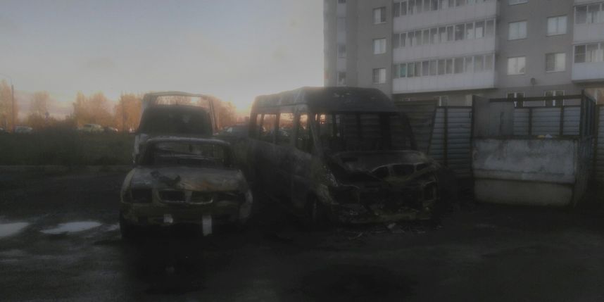 - Утро добрым не бывает, - подписали фото, на которых запечатлели сгоревшие машины возле мусорных контейнеров. - Колпино, Лагерное шоссе, д.49. Погорели...
