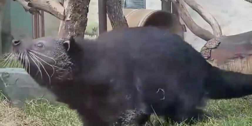 В пресс-службе пригласили: "Приходите в гости понаблюдать за играми наших кошачьих медведей. Ждем в Зоопарке всех фанатов очаровательных усатых бинтуронгов!"
