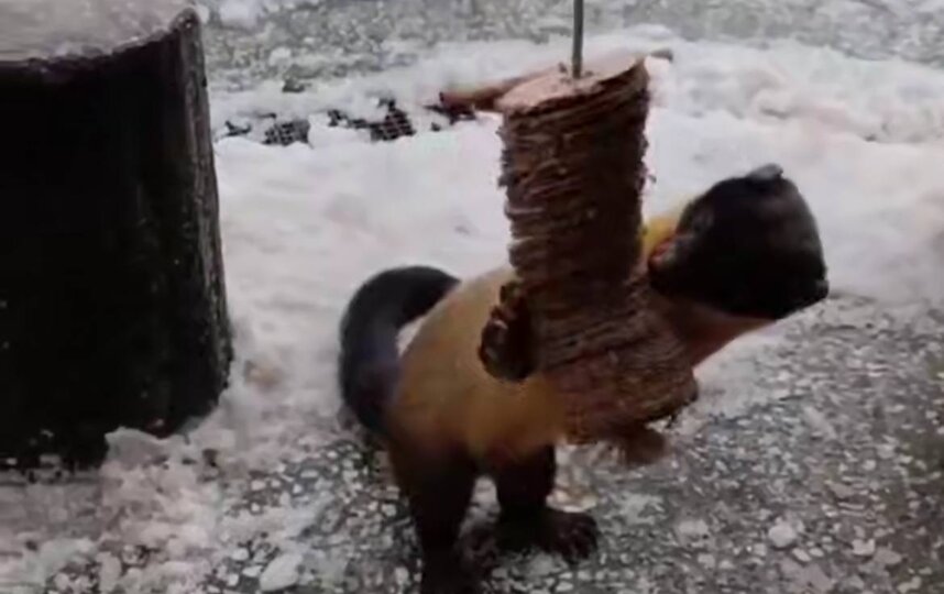 Животные быстро справились с задачей. Даже после того, как все было съедено, харзы продолжили играть с игрушкой.