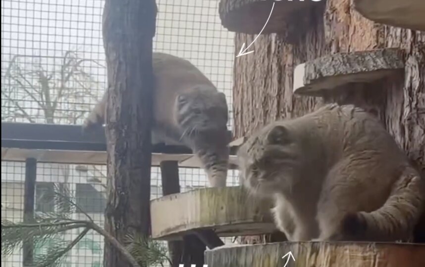 Сотрудники отдела "Хищные млекопитающие" устроили встречу манулов на днях. Шу проявил живой интерес к новой соседке, а Пепе, судя по поведению, сразу оценила предложенные условия. Знакомство началось с взаимного обнюхивания, но уже через минуту самка юркнула в домик. Когда самец попытался последовать за ней, то получил лапой по носу – Пепе обозначила лидерство с порога.