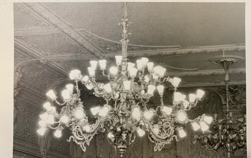 Центральная люстра оборудована семьюдесятью светоточками, две другие – шестьюдесятью каждая. Специалисты сначала обеспыливают поверхность люстр, затем при помощи специальных, "мягких" средств моют плафоны, лампочки и золоченую бронзу: два яруса изогнутых рожков и чеканные розетки.