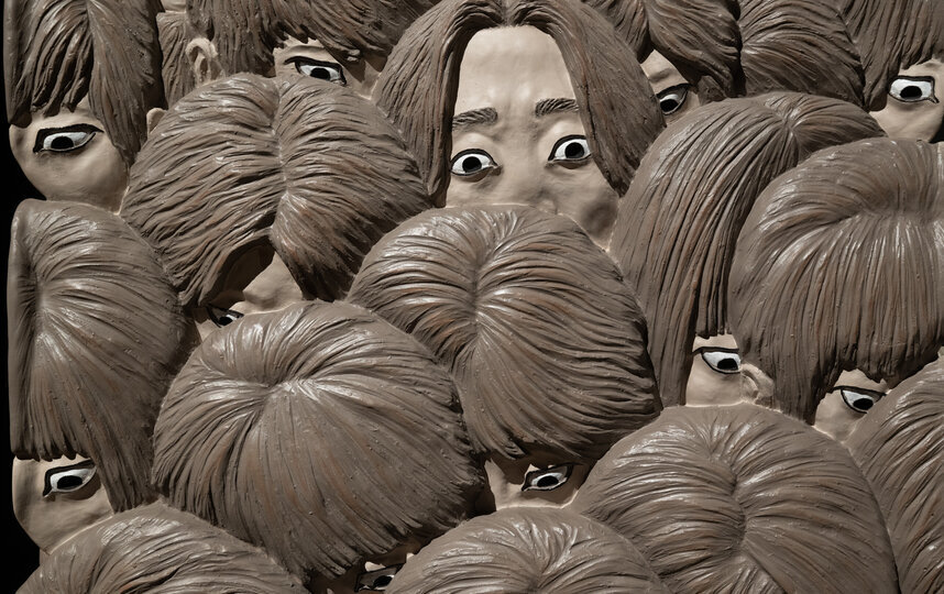 – Образ массы и очнувшегося в ней человека. Там видно лицо, у него широко открыты глаза, и он смотрит поверх всех этих голов. Рядом стоит экспортный ящик, в котором скульптура путешествует. Это можно интерпретировать как некую биомассу, которая является тоже товаром и рабочей силой, – рассказывает Павел Маркайтис.