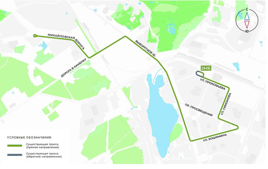 Как сообщили в городском комитете по транспорту, маршрут специально разработан для обеспечения прямой беспересадочной связи активно застраивающихся кварталов с подземкой. Автобусы будут следовать по улицам Прокофьева и Симонова, проспекту Просвещения, а также по Выборгскому шоссе и дороге в Каменку, заходя непосредственно к домам на Михайловской дороге.