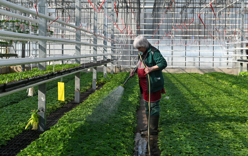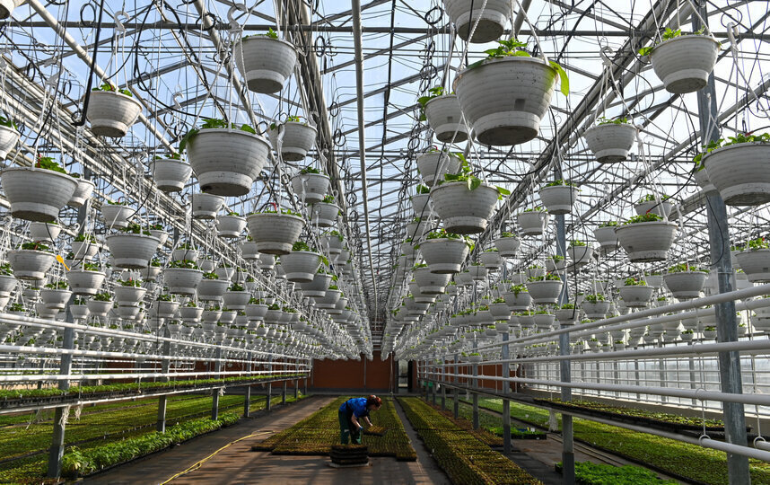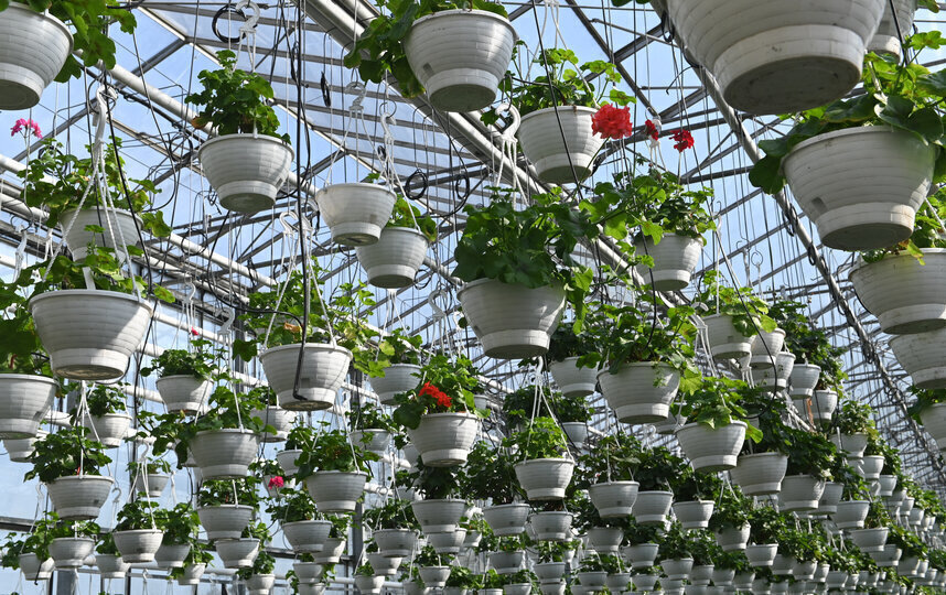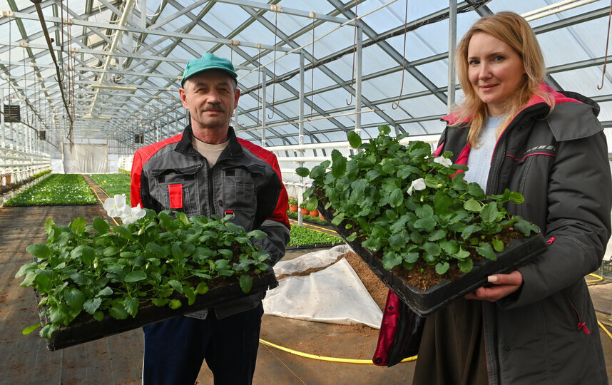 К весенне-летнему сезону в калининских оранжереях вырастят более полумиллиона растений. Тысячи зелёных ростков сейчас тянутся к стеклянному потолку. Это тагетесы и пеларгонии. То здесь, то там на грядках виднеются и первые бутоны.