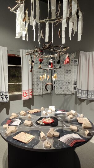 Второй этаж "стартует" с коллективной выставки, посвящённой архитектуре шести разных районов Ленинградской области. Молодые архитекторы отправились в экспедицию в отдалённые уголки региона, а свои впечатления воплотили в небольших пространствах.