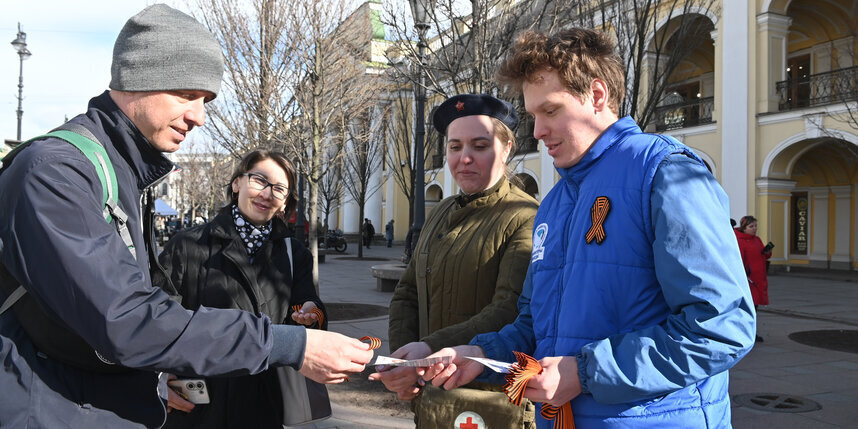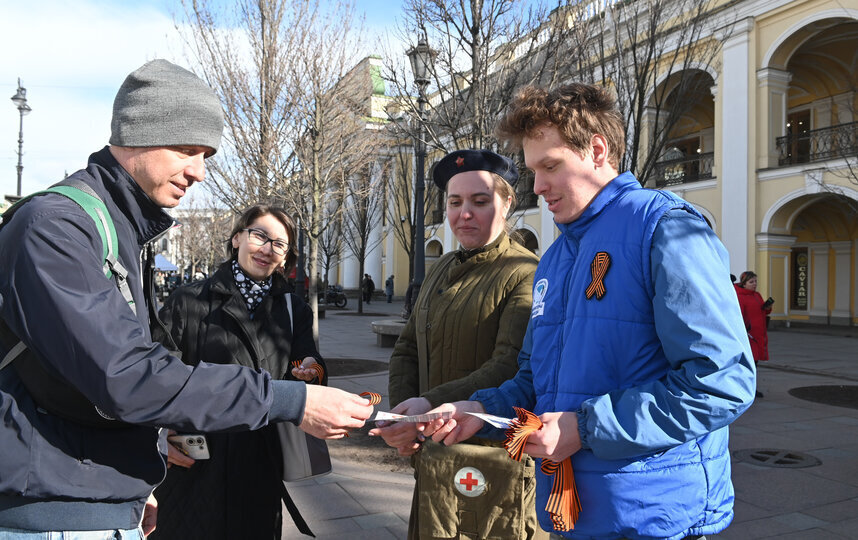 Всероссийскую акцию "Георгиевская лента" запустили в Северной столице 23 апреля. Об этом сообщает телеканал "Санкт-Петербург".