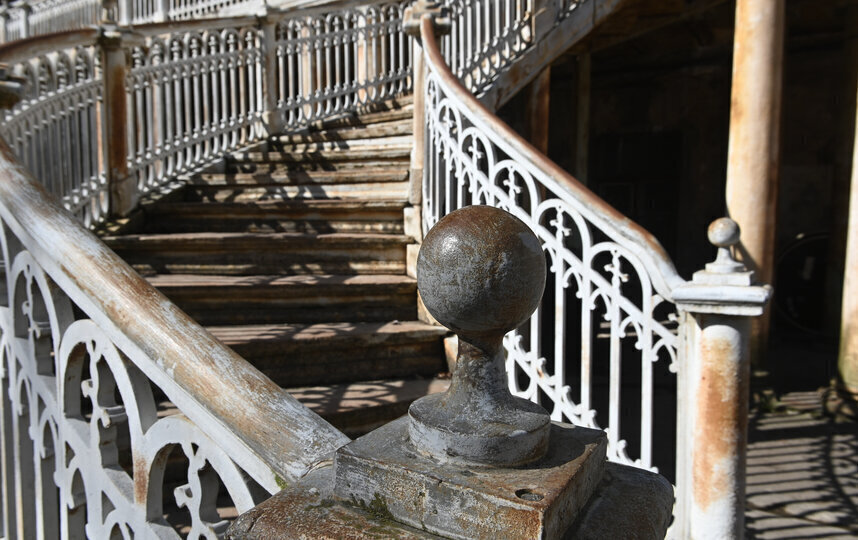 Атмосферные виды внутренних дворов притягивают блогеров и кинематографистов. Так, винтажную лестницу можно увидеть в фильме "Пророк" с Юрой Борисовым или сериале "Шаляпин". Между тем полюбоваться уличными интерьерами особняка так просто не выйдет.