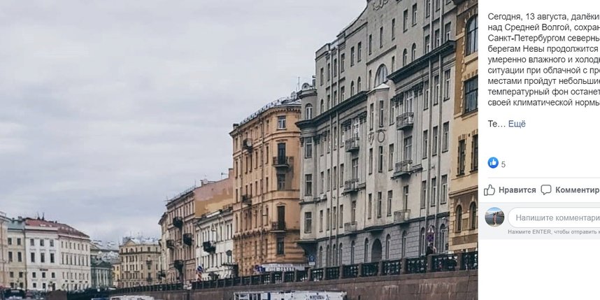 В четверг, 13 августа, в Петербурге ожидается облачная с прояснениями погода, пройдут кратковременные дожди. Подробнее о погоде на сегодня рассказал ведущий специалист центра "Фобос" Михаил Леус на своей странице в Facebook.