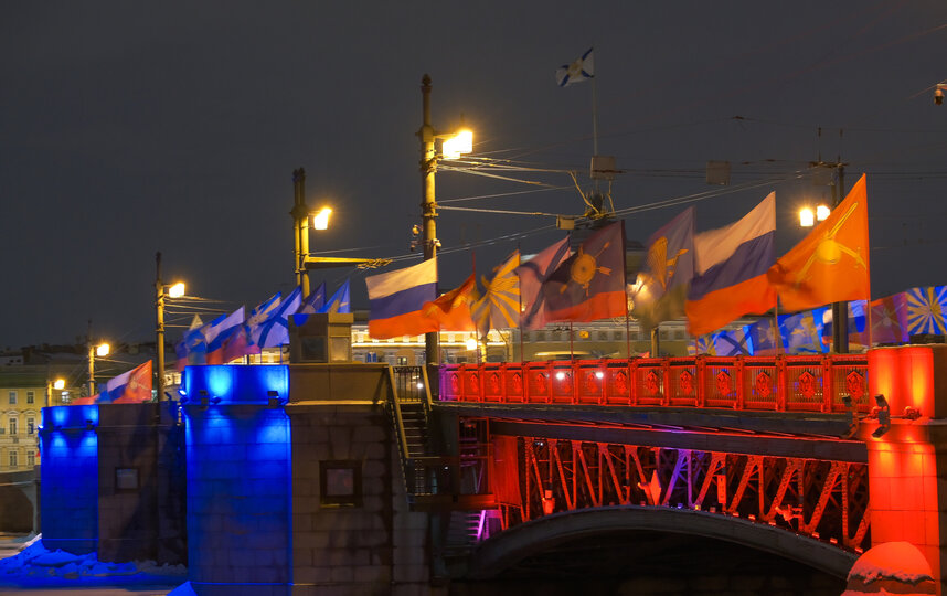 "Ставшая уже традиционной подсветка петербургских мостов в День защитника Отечества – дань признательности нашим российским воинам. Знаменитые архитектурные символы города в цветах отечественного триколора – знак единства и гордости за Россию, её вооружённые силы и их славные боевые традиции", – подчеркнул губернатор Петербурга Александр Беглов.