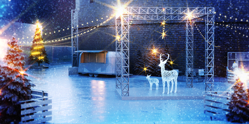 Площадь ледового поля составит более 850 м2, которое будет украшено декоративной подсветкой и уличными фонарями, а также по периметру катка будут расположены тематические фотозоны.
