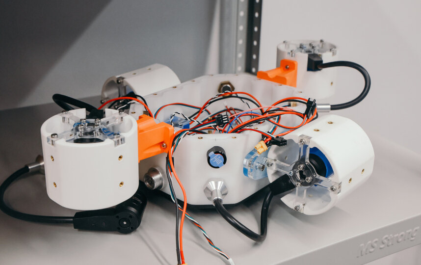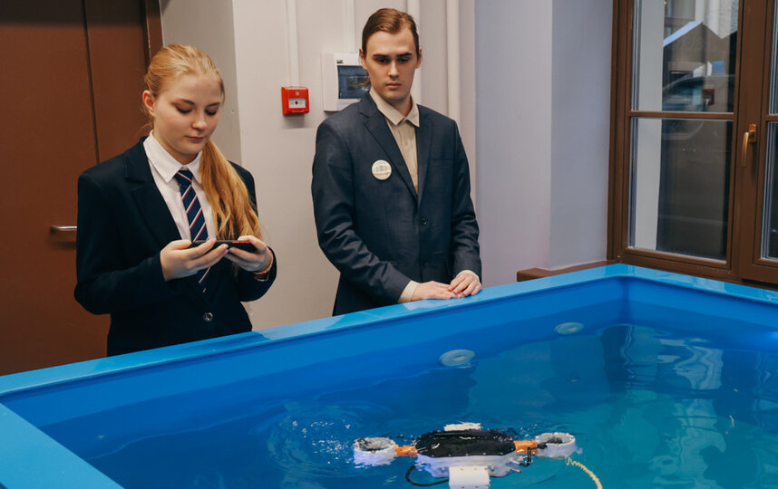 В кабинете моделирования и проектирования ученики осваивают принципы и механизмы сборки подводных дронов. Готовые модели они испытывают в подводном бассейне, которым оборудован лицей.