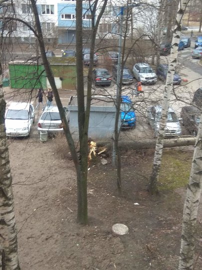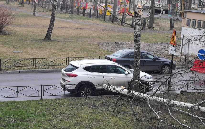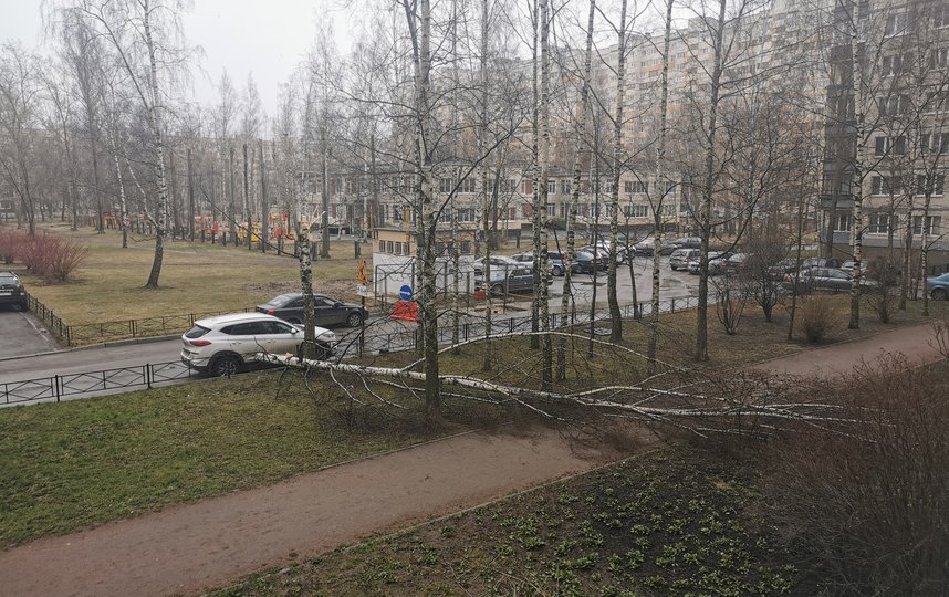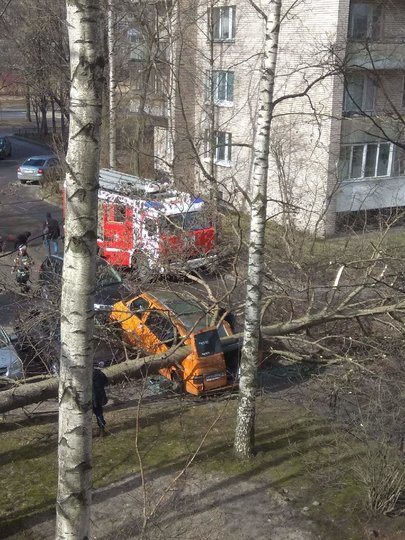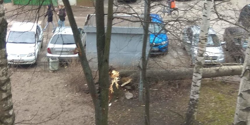 В Санкт-Петербурге ветер повалил деревья во дворах.