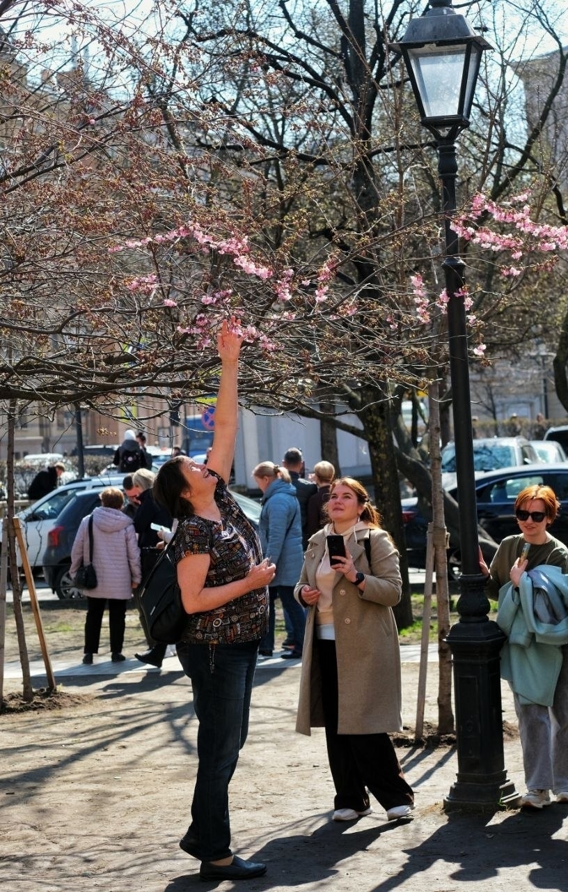 – Сакура растет здесь уже больше 20 лет, и каждый год ее, бедную, мучают, – возмущаются местные жительницы. – Она еще толком не зацвела, а уже страдает.