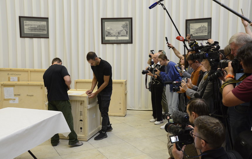 22 августа в Корпусе Бенуа специалисты Русского музея распаковывали и осматривали пострадавшие при взрыве в Таганроге произведения искусства из коллекции Таганрогского художественного музея. Комплексная реставрация пострадавших произведений пройдет при поддержке ПАО "Газпром" - партнера реставрационных проектов Русского музея.
