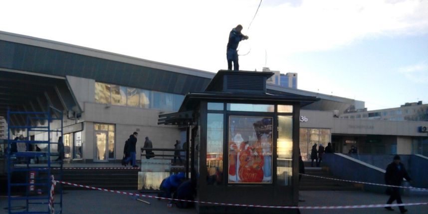 Перед станцией метро "Пионерская" в пятницу, 20 января, вечером установили торговый павильон. Местные жители с таким положением дел оказались не согласны.