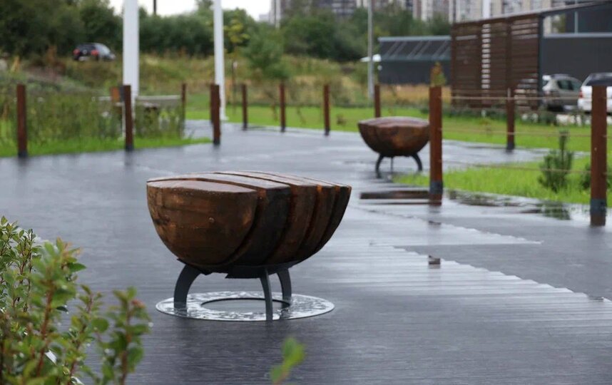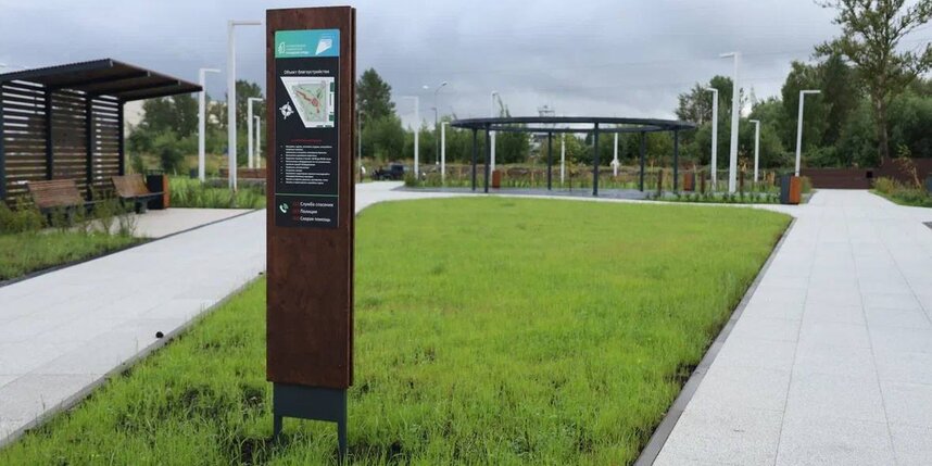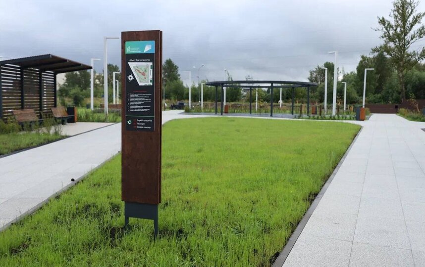 Специалисты по озеленению высадили 82 дерева и 277 кустарников, а также создали 399 метров живой изгороди, которая формирует границы сквера и создает уютные зоны. Также рабочие установили современную уличную мебель, в том числе качели радиальной конструкции.