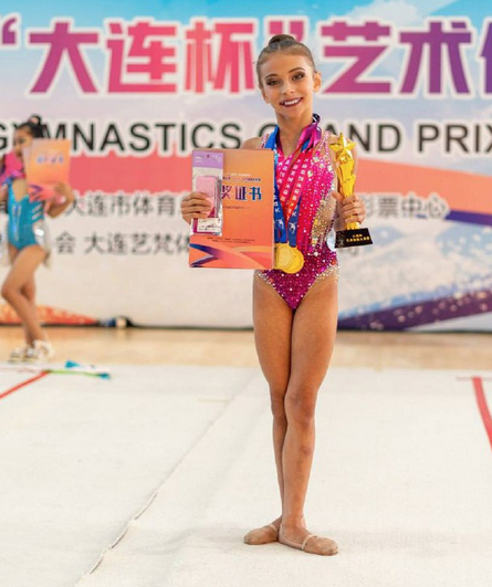 Спортсменка 2016 года рождения завоевала золото в многоборье и в упражнениях без предмета, с обручем и мячом.