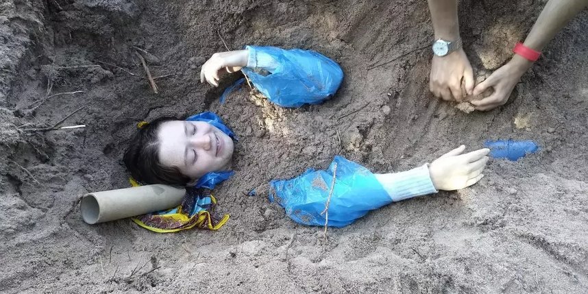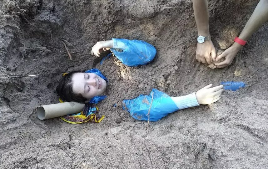 Определившись с местом и размером могилы, можно начинать копать. Удобно разместившись в яме, вы зовёте людей, которые помогут вас засыпать. Из-под земли торчит только обрезок пластиковой бутылки или какая-нибудь трубка для дыхания.
