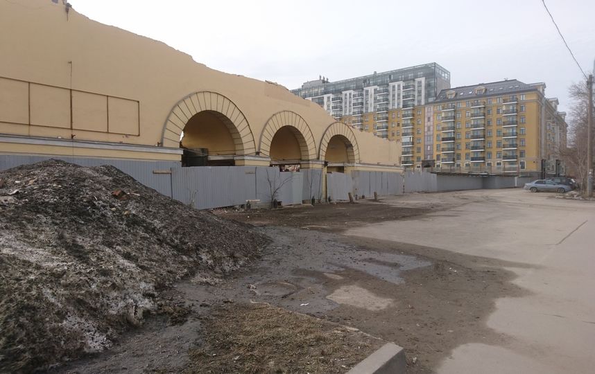 На перекрестке Московского проспекта и набережной Обводного канала (рядом со станцией метро "Фрунзенская") начали сносить корпуса бывшего молочного комбината №1 "Петмол".