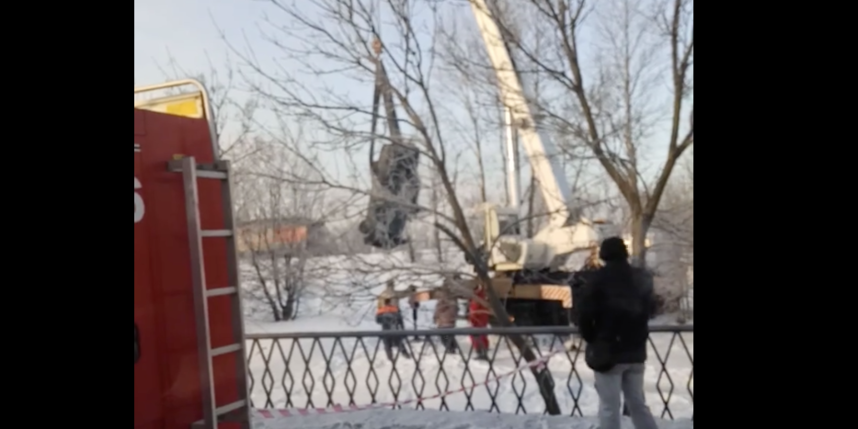 Чтобы поднять авто из реки привлекалась спецтехника МЧС.