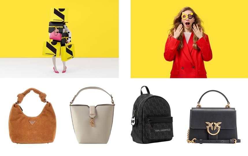 Ассортимент сумок в эти "Сумасшедшие дни" насыщен трендами: это прямоугольные сумки-кейсы от Coccinelle, модная bowling bag от Piumelli, модели с монограммами от Liu Jo и сумки-вёдра DKNY – бренд впервые участвует в акции. Ещё одна премьера сезона – это сумки Christian Villa, итальянской марки, которая эффектно балансирует между элегантными формами и современными акцентами.