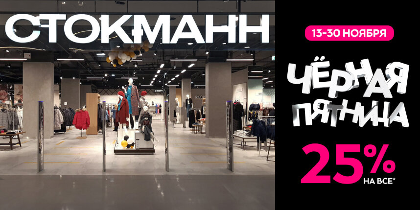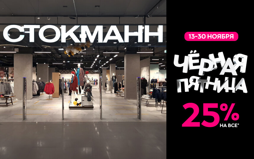 В этом году "Чёрная пятница" в СТОКМАНН продлится до 30 ноября. В рамках акции покупателям универмагов и интернет-магазина stockmann.ru доступна скидка 25% на товары* из всех категорий: одежду, обувь, сумки и аксессуары для всей семьи от мировых и локальных фэшн-марок, а также предметы уюта, в том числе – из праздничного ассортимента Рождественского базара.