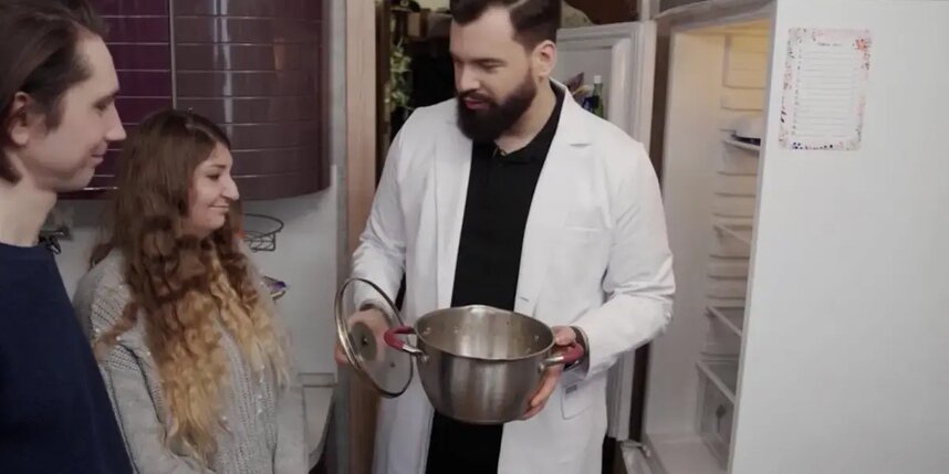Раздражающая девица. Мне показалось, что проблемы в этой семье не только в холодильнике. Из подруги героя, хоть и она старалась всячески поддакивать доктору в духе "А я ему говорила!", помощница оказалась так себе. Быстро выяснилось, что предел её кулинарных изысков – позавчерашняя гречка и суп из готовой вермишели. Причём свои привычки она менять явно не готова. Попытка сымитировать переход на здоровое питание покупкой полуфабрикатов быстро была разоблачена. Как при этом парень пошёл на поправку – чудо ТВ-шоу.