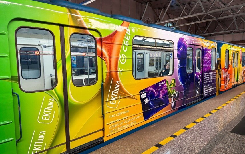 Ко Дню знаний и запуску социального проекта "ЕКПшка" Сбер и правительство Санкт-Петербурга представили городу необычный подарок – брендированный состав метро. Шесть ярких вагонов, оформленных в дизайне новой детской карты, вышли на путь Московско-Петроградской линии. Они будут курсировать в течение двух месяцев, знакомя пассажиров с новой многофункциональной картой для учащихся.