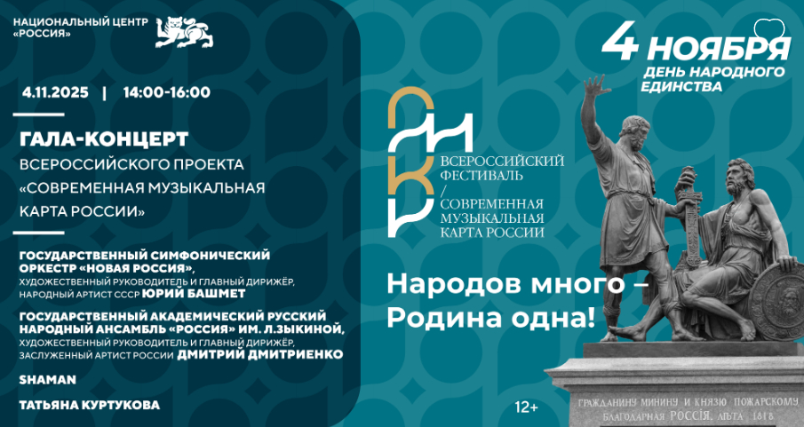 Гала-концерт приурочен ко Дню народного единства и является кульминацией фестивальной программы Всероссийского проекта "Современная музыкальная карта России", посвящённого многообразию культурного пространства России и объединяющего композиторов из разных уголков нашей большой страны. Его трансляция состоится на сайте Национального центра Россия.