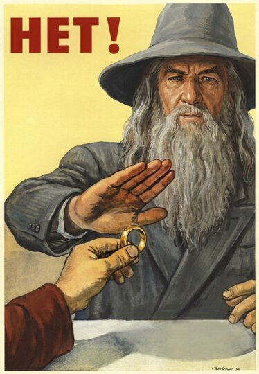 Шрек выступает против осушения болот, профессор Дамблдор призывает записываться в мракоборцы, а Гэндальф, став героем легендарного плаката "Нет!", решительно отказывается от соблазна взять протянутое кольцо всевластия.
