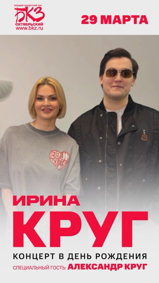 "Юбилейный концерт" – новая программа и новая глава в творческой жизни Ирины Круг, которую певица открывает вместе со своим сыном Александром Кругом. Премьера программы состоится 29 марта 2026 года в Санкт-Петербурге, в Большом Концертном Зале "Октябрьский", в День Рождения артистки.