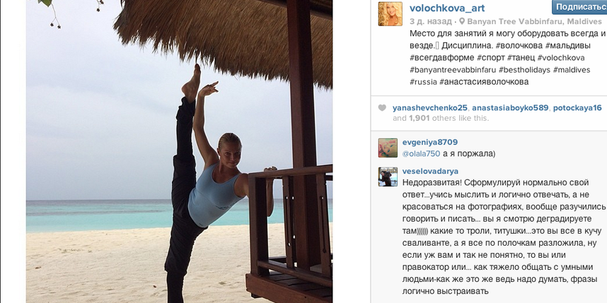 Напомним, что ранее многие звезды российского шоу-бизнеса сделали пародию на фотосессию Анастасии Волочковой во время её предыдущего отдыха на Мальдивах. Подборку пародий можно посмотреть ЗДЕСЬ.