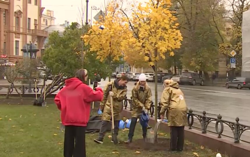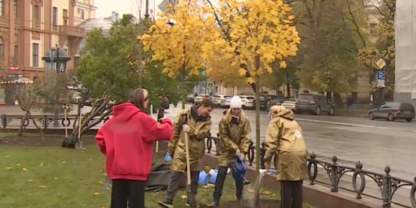 В Ново-Манежном сквере с участием представителей проекта "Петербургский дизайн" состоялся креативный субботник. Зеленую зону декорировали 27 остролистными кленами и стильными яркими скворечниками.