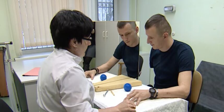 Гимнастика для рук помогает избавиться от фантомных болей. Один из ветеранов СВО, Иван, в августе потерял руку, но до сих пор чувствует жжение, прострелы и спазмы. Ему прописали зеркальную терапию.