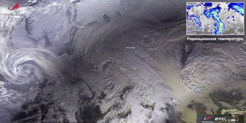 Анимация создана на основе снимков многозональных сканирующих устройств спутников серий "Электро-Л" и "Арктика-М", сделанных 7-9 января. На кадрах видно, как обширный атмосферный вихрь надвигался с запада.