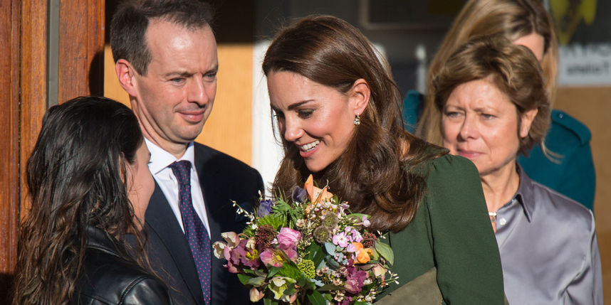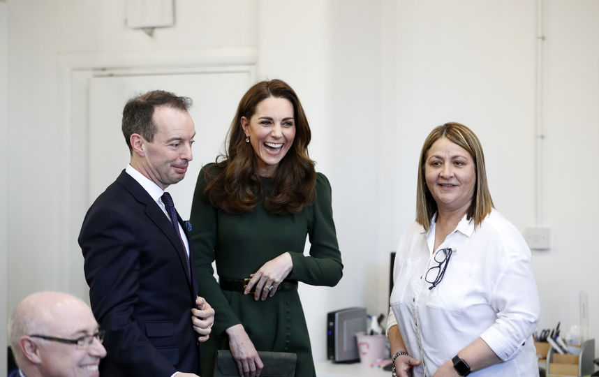 Несмотря на прохладную погоду, Кейт Миддлтон предпочла пройтись от машины до здания, где располагается организация, без какой-либо верхней одежды и в туфлях на высоком каблуке. При этом она особо не спешила и приветствовала собравшихся вокруг местных жителей, которые, кстати, были в куртках или пальто.